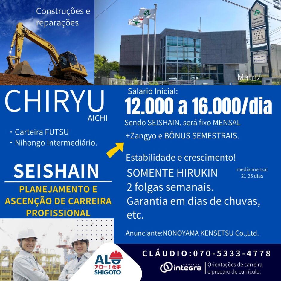 - Capaz de se comunicar em japonês (necessário ler e escrever hiragana e katakana)