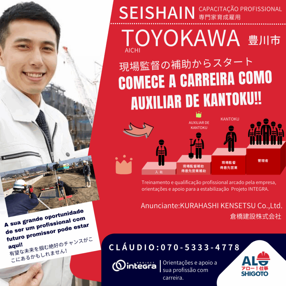 SalárioDiária de 12.000 ienes ou mais (dependendo da experiência). Período de experiência: 6 meses.